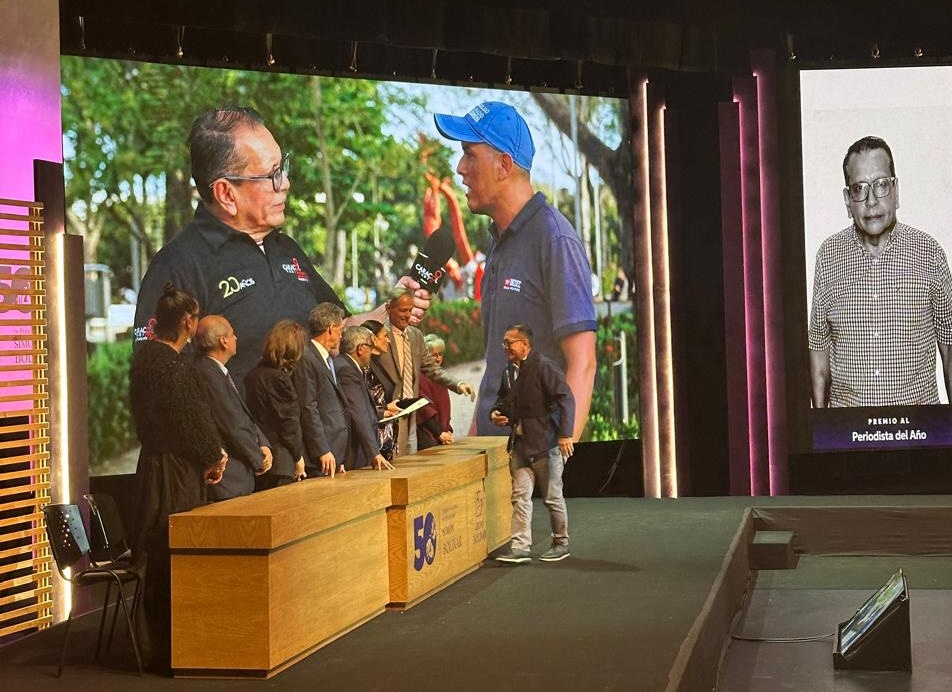 When Chicangana received his “Journalist of the Year” award, his arm was in a sling, making it difficult for him to shake hands with jury members and pick up his medallion and diploma.